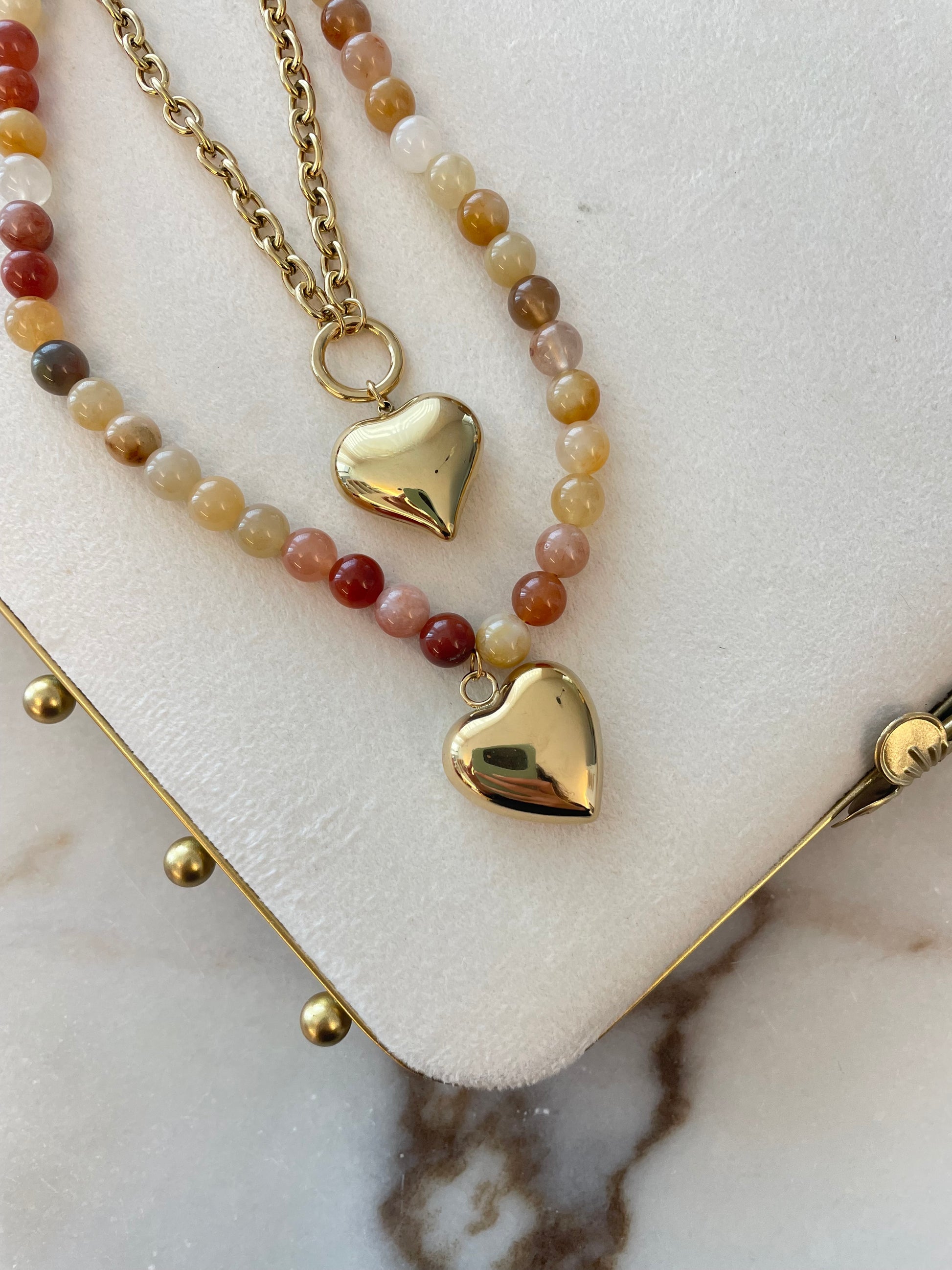 - com pedras naturais e pendente de aço inoxidável banhado a ouro