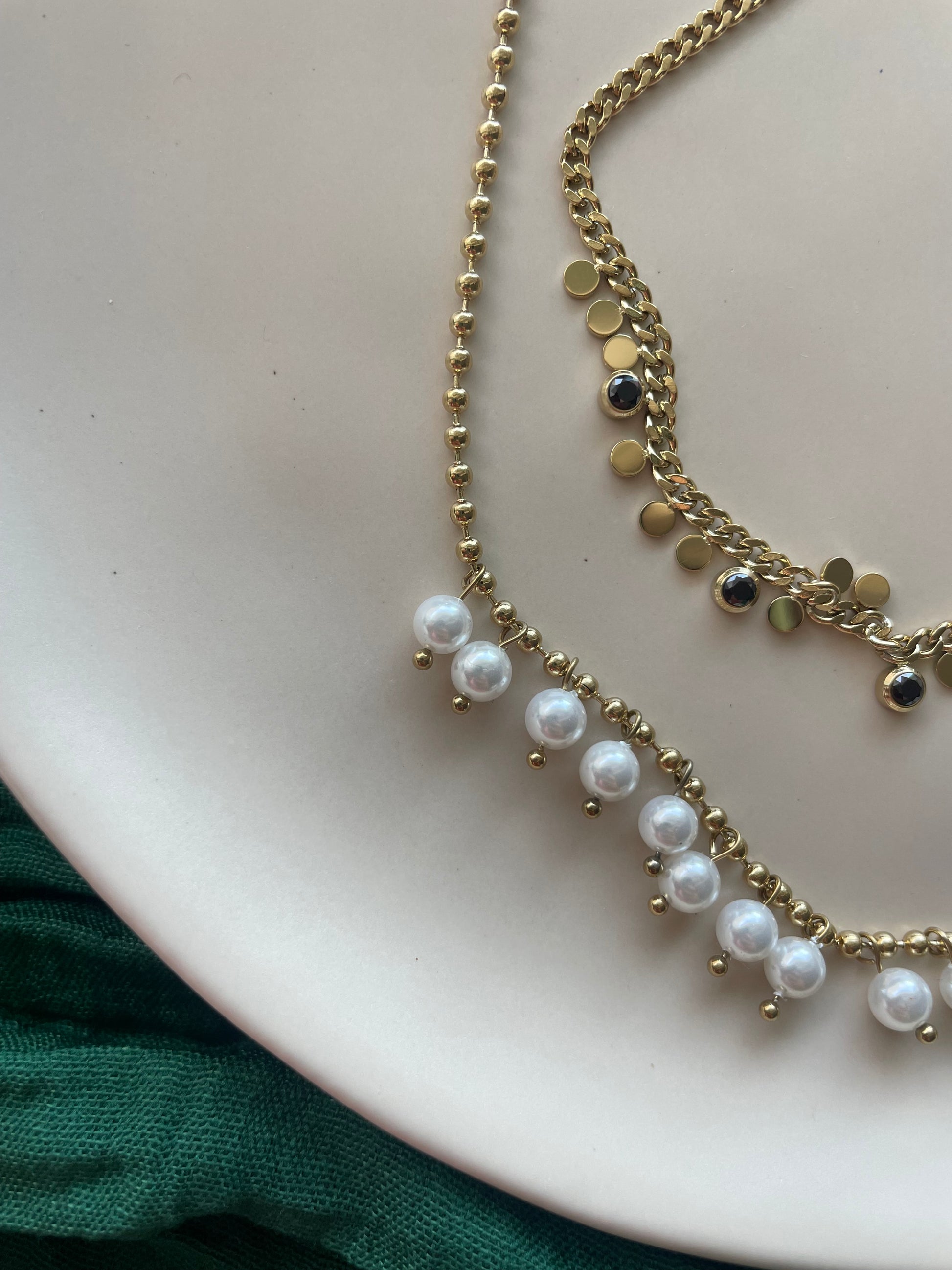 Colar de aço inoxidável com Pendentes de onix ou pérolas.