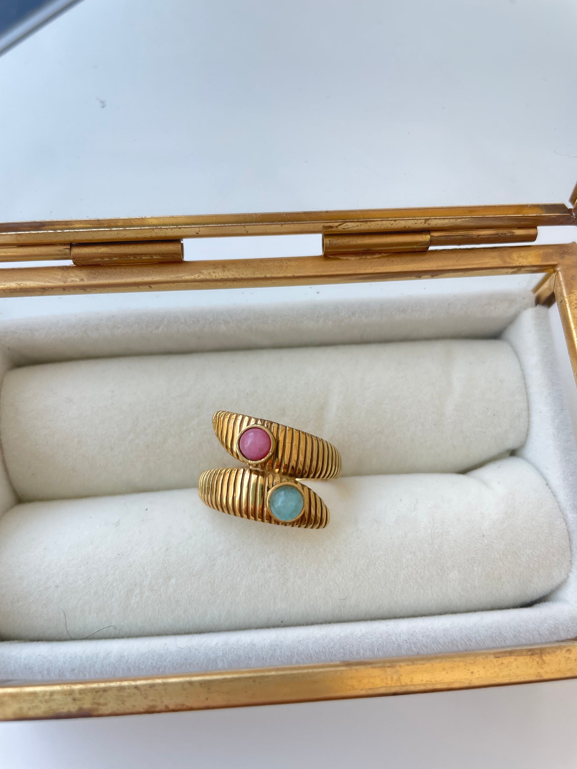 Anel ajustável de aço inoxidável e banho de ouro. Com aplicação de 2 pedras