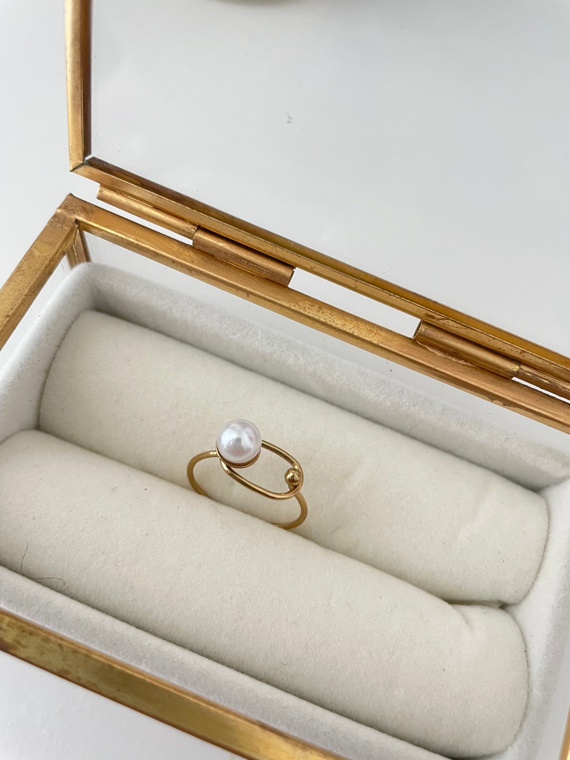 Anel ajustável de aço inoxidável e banho de ouro. Com aplicação de pérola