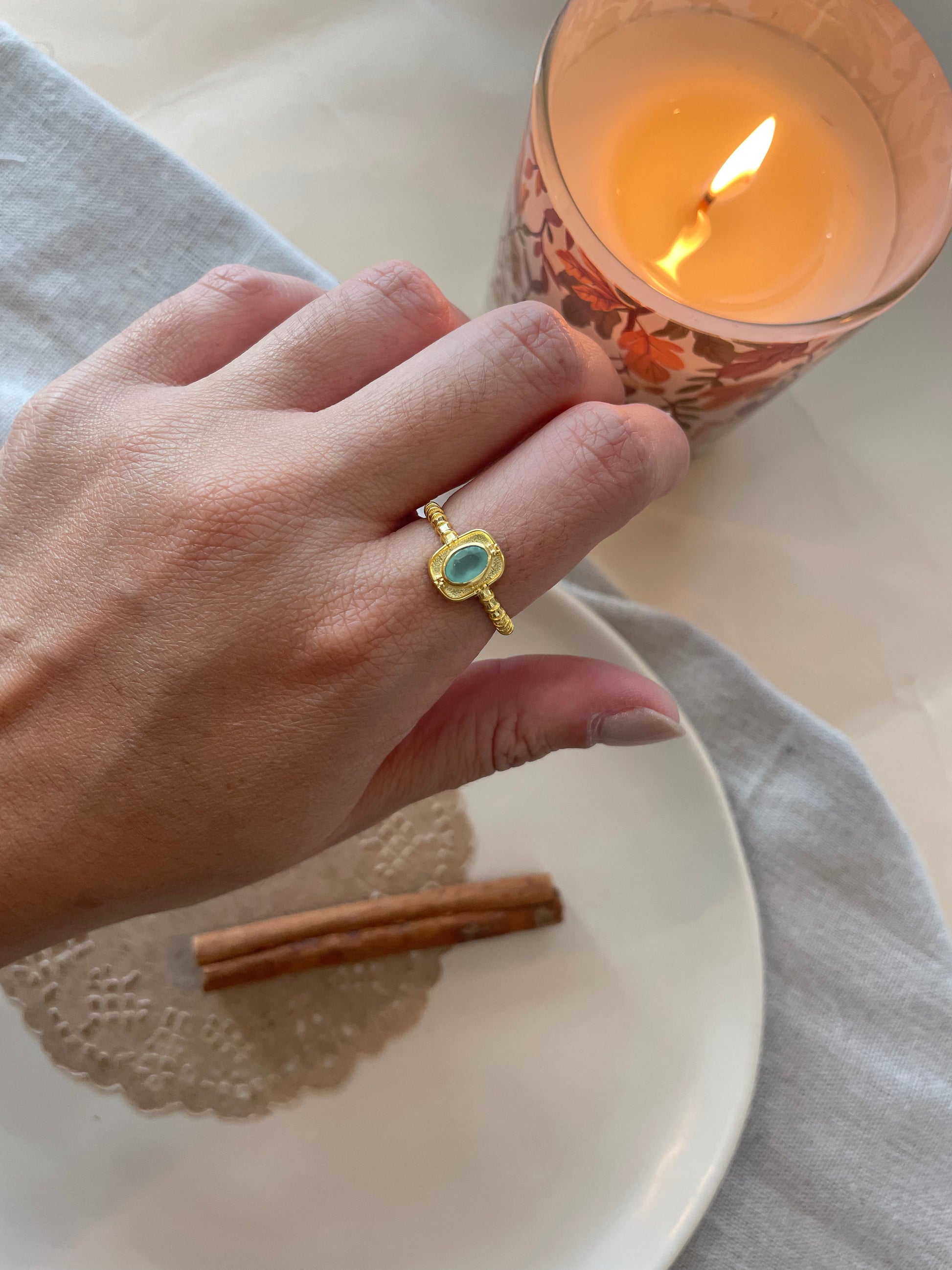 Anel com pedras naturais: calcedónia e pedra da lua
