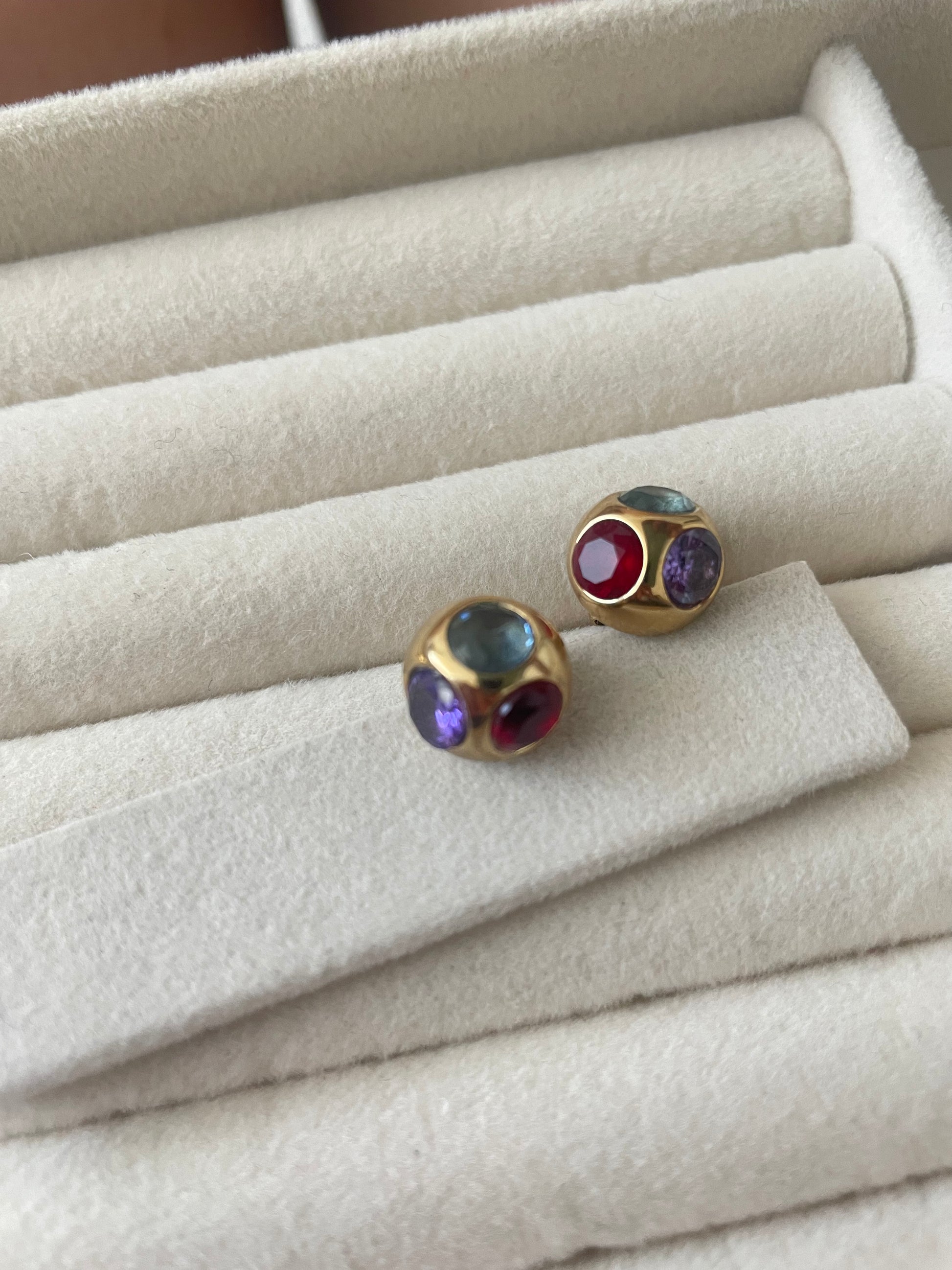 Brincos pequenos em aço inoxidável e 3 zirconias coloridas.