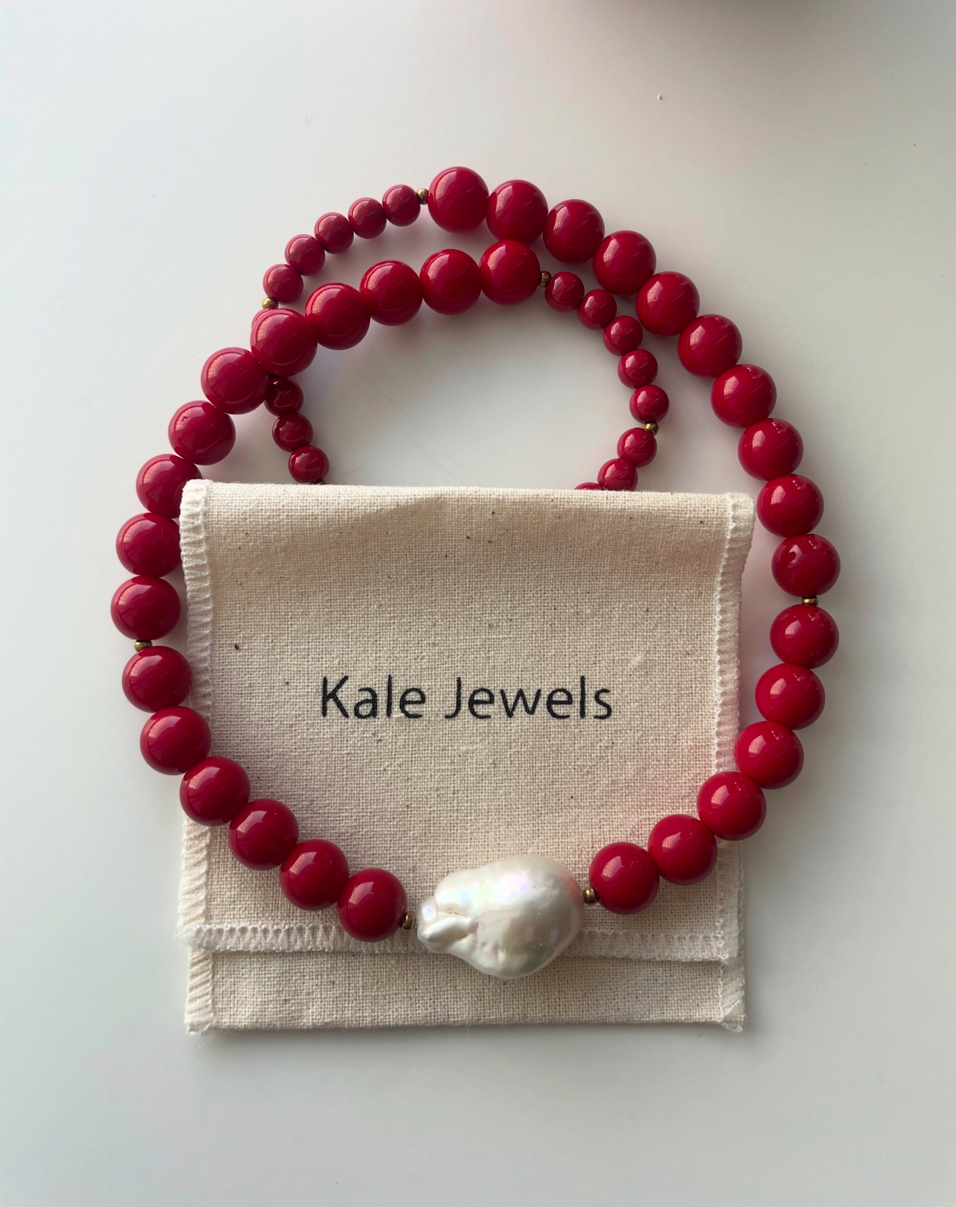Colar em pedra natural de 2 tamanhos diferentes e pedra barroca ao centro.