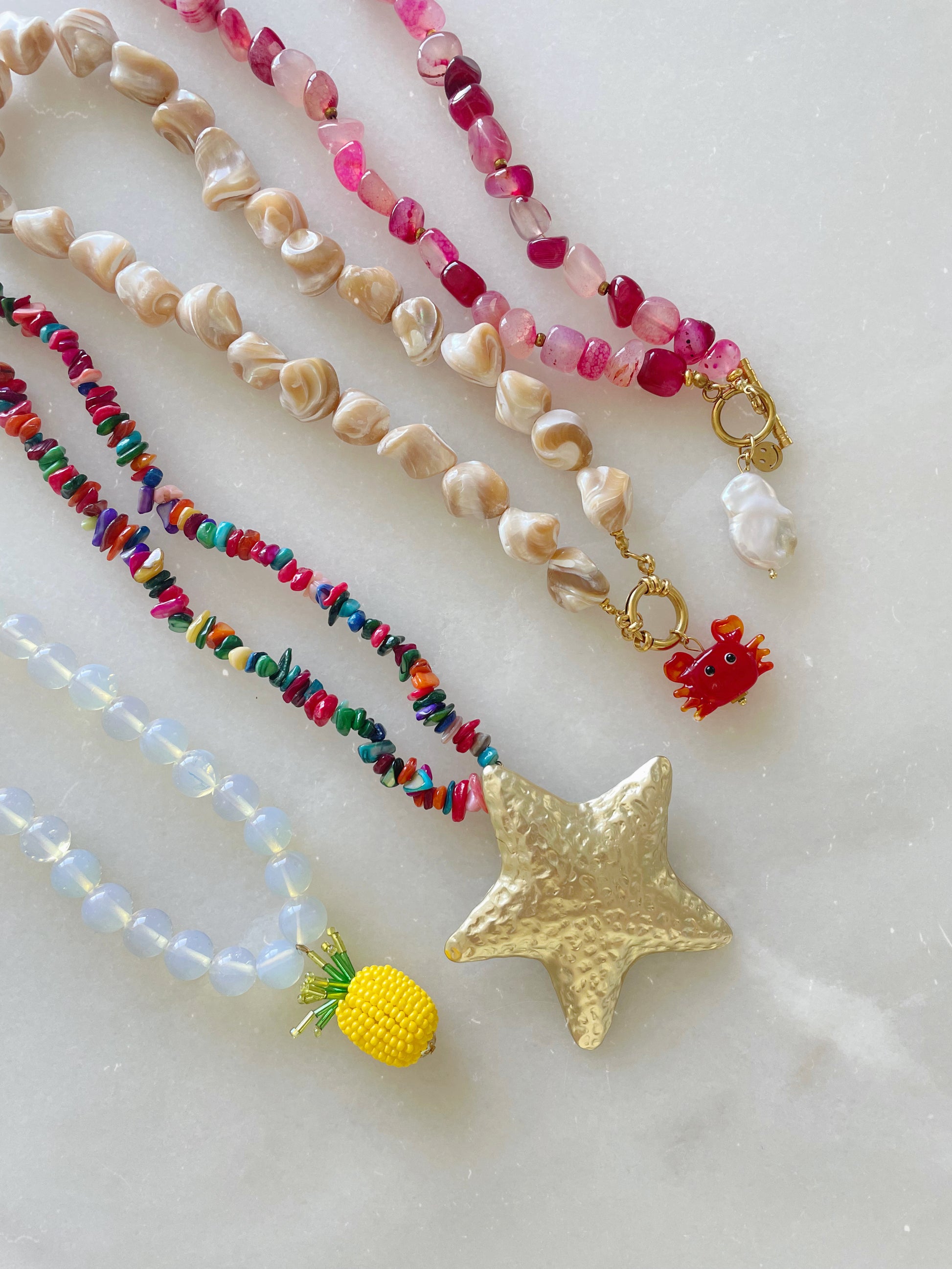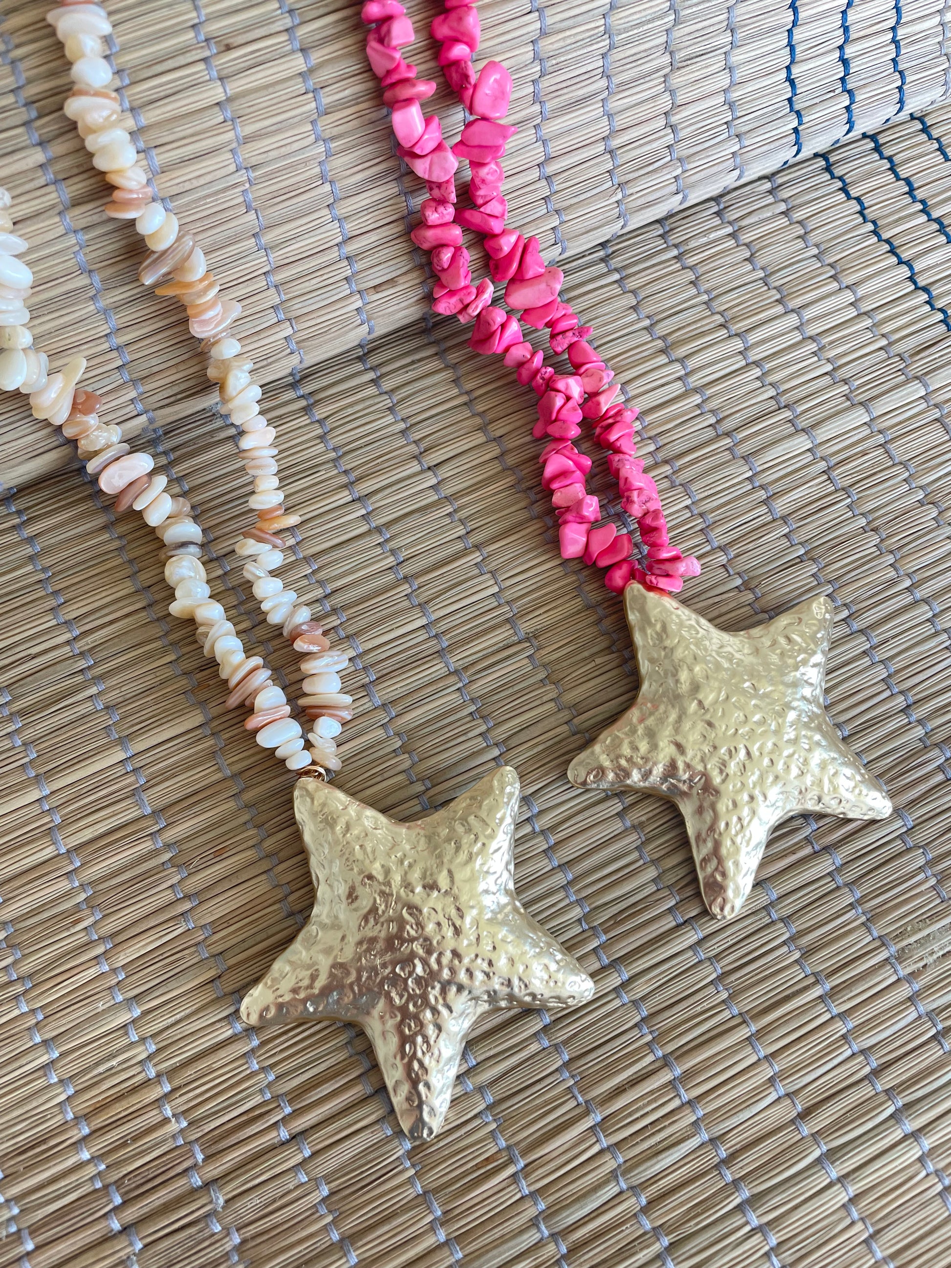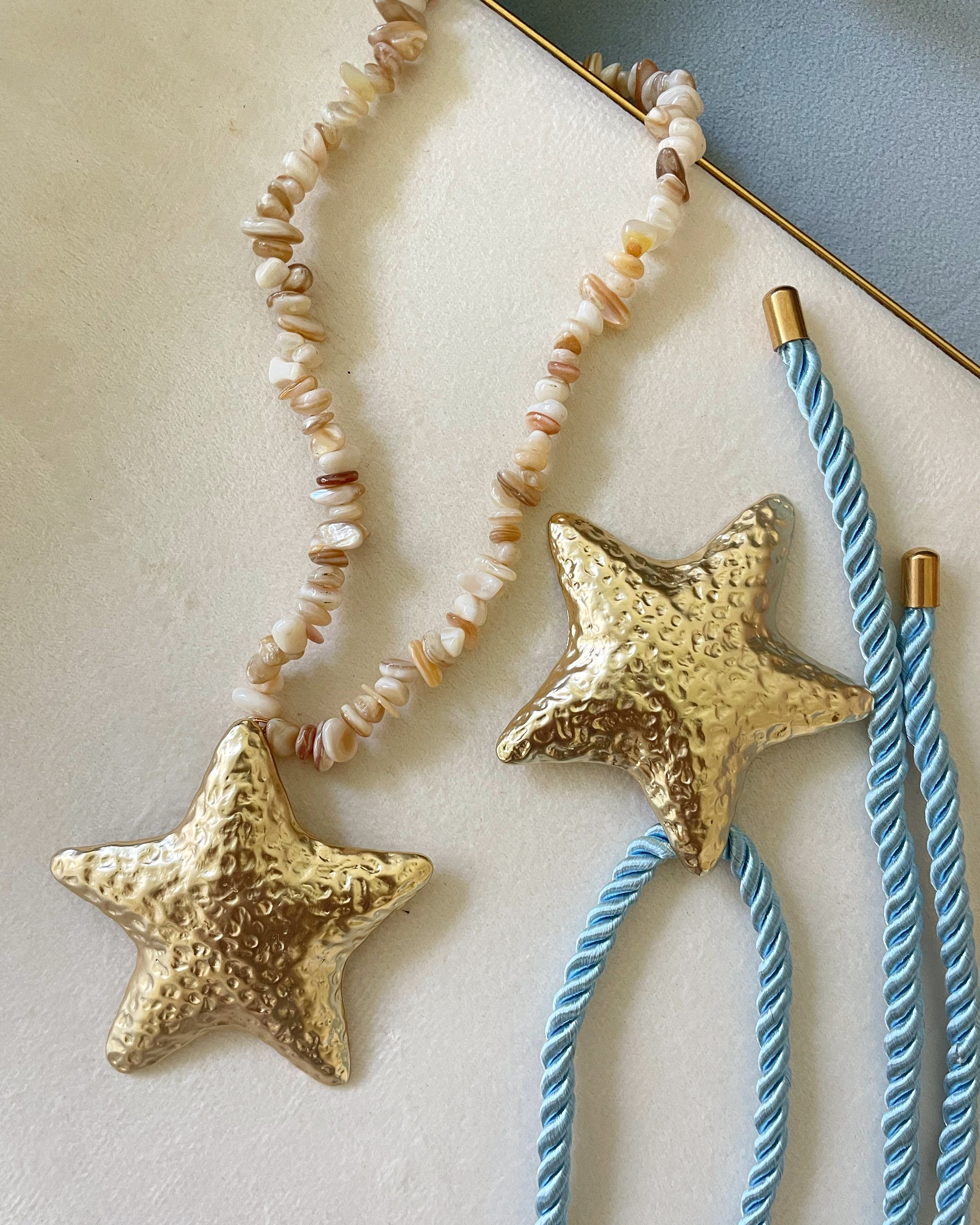 Colar em cascalho com aplique de estrela grande em aço inoxidável banhado a ouro 18K.