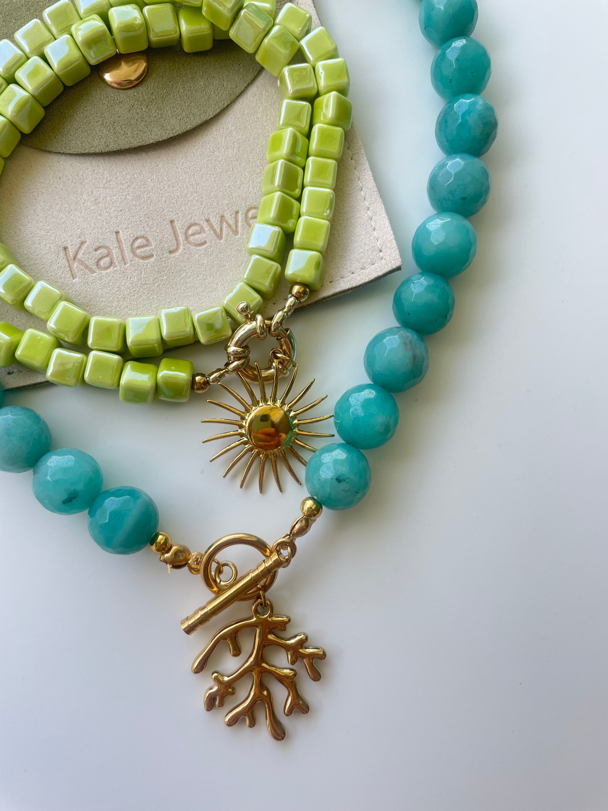 Colar de Pedra Agata azul turquesa. Fecho e pendente em aço inoxidável