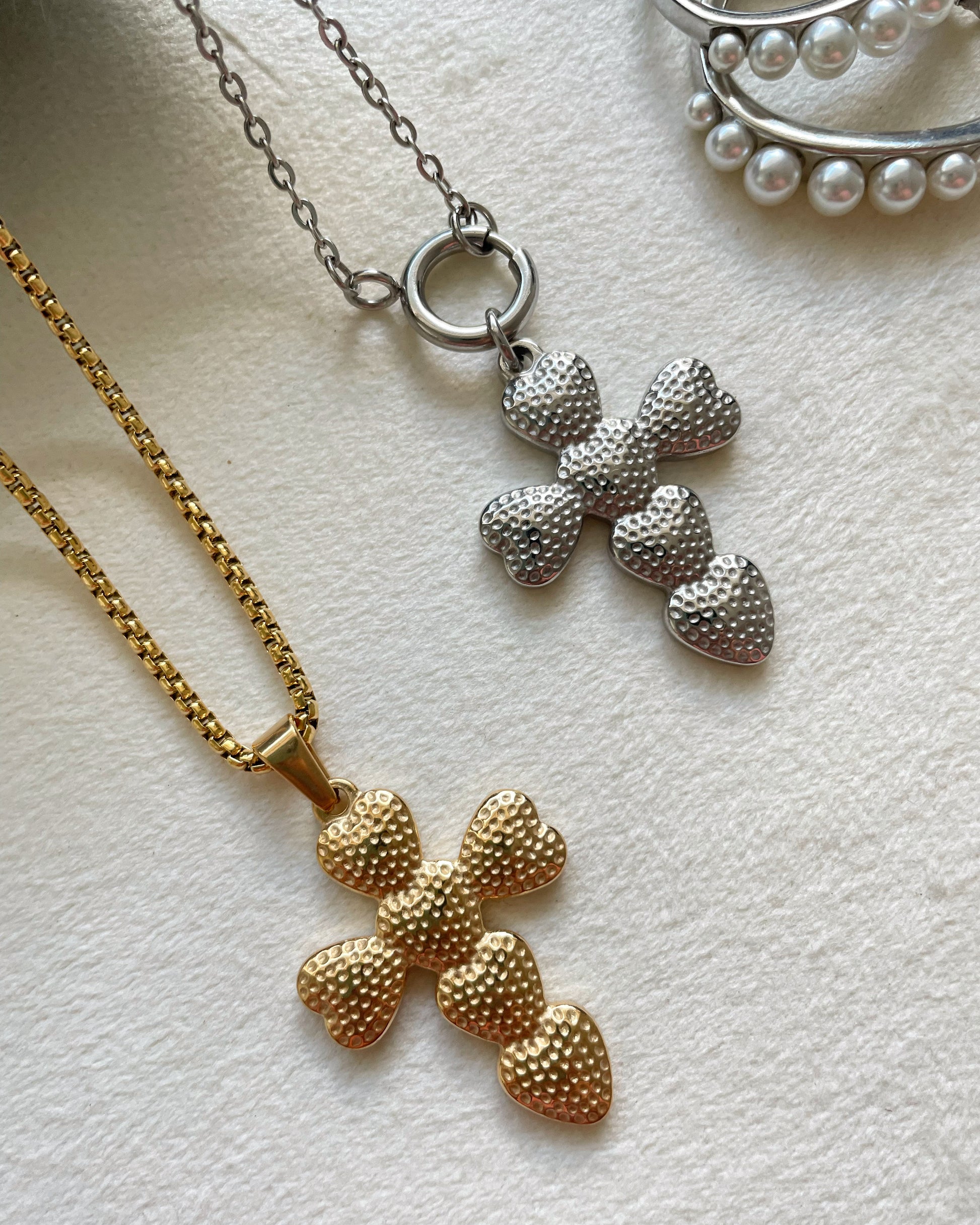 Colar de aço inoxidável. Pendente de cruz removível também em aço inoxidável.