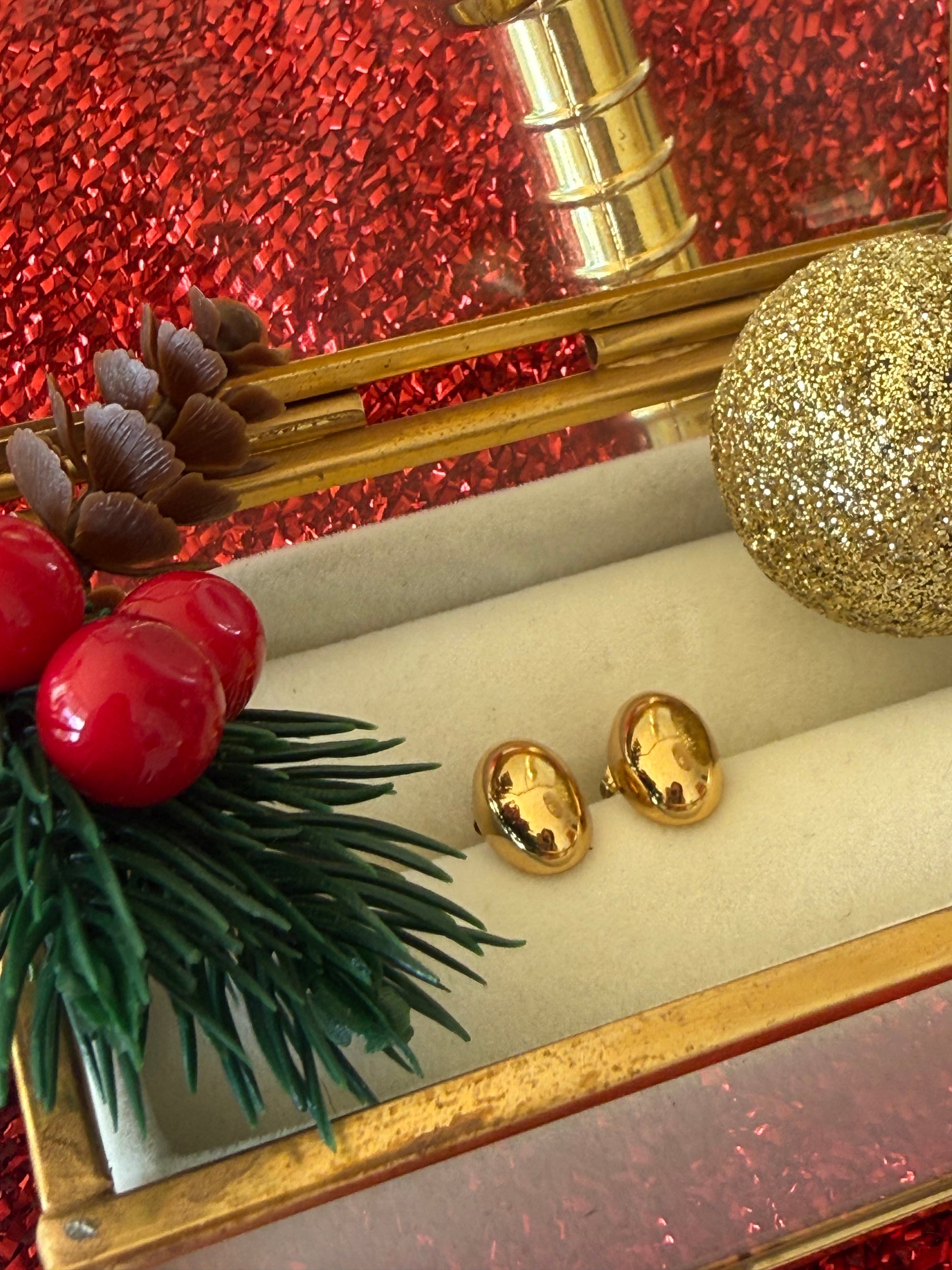 Brinco em aço inoxidável e banhado a ouro, em formato de pequena gota.